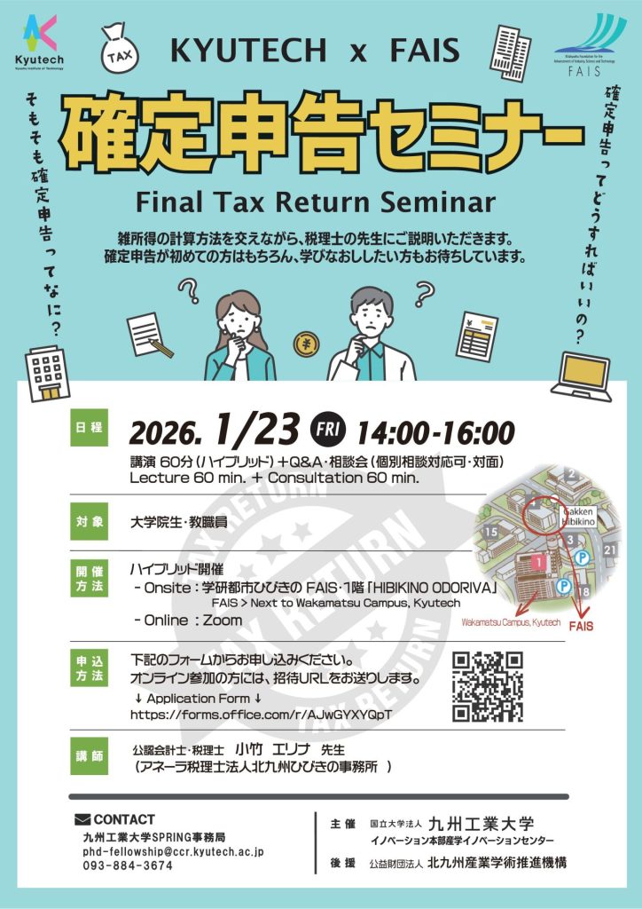 23日は確定申告セミナー(主催: 九州工業大学)と同時開催です!